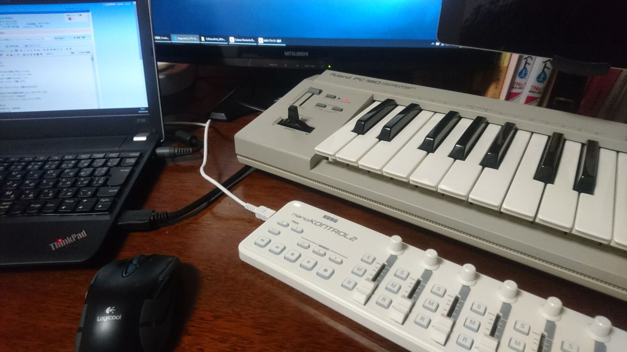 次のblogで紹介しますが、このnanoKONTROL2を繋いで、DAW経由でハードウェア音源を操作できます。