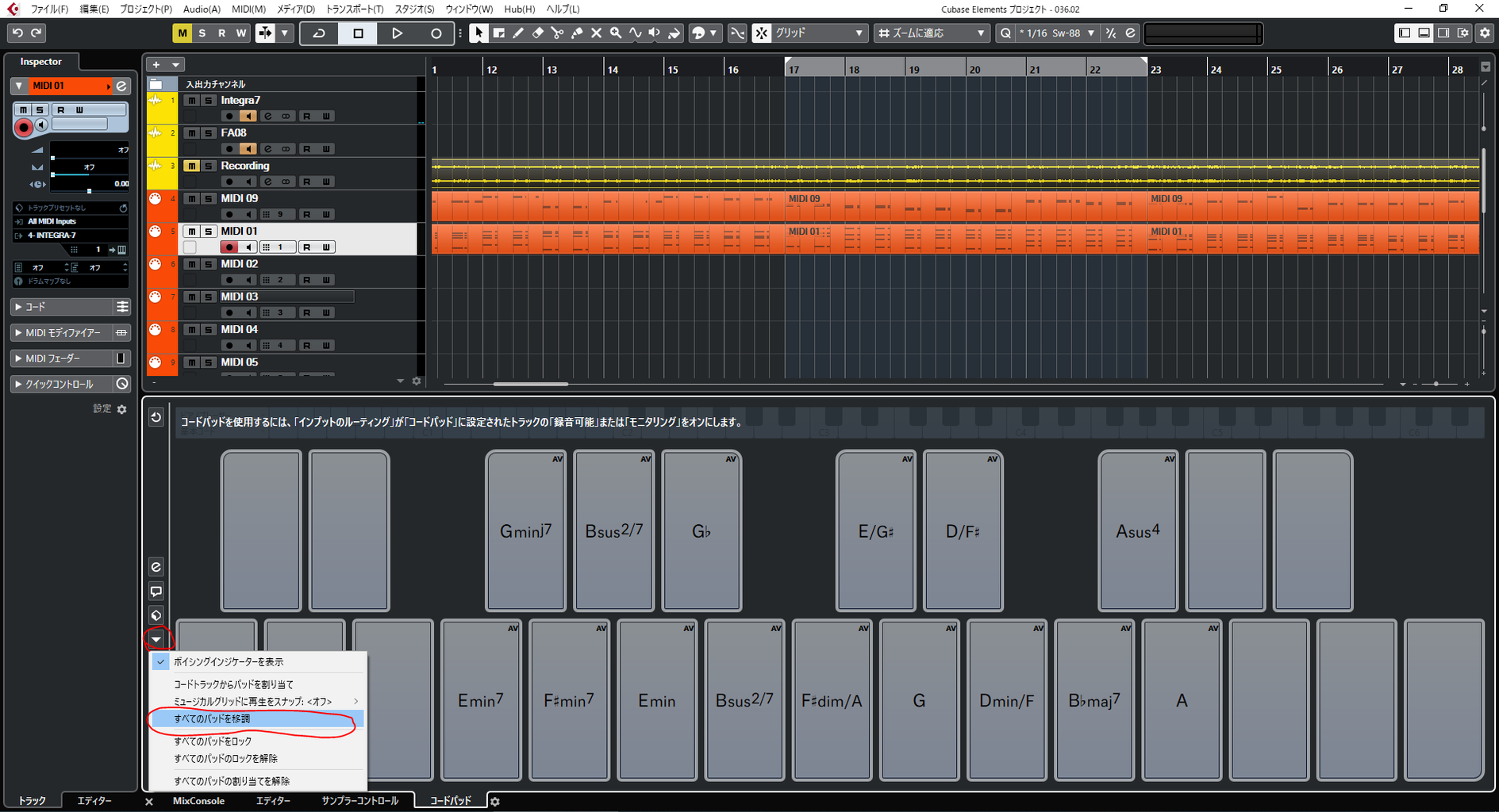 さて、まず、コードパッドの使い方ですが、パッドにコードを割り当てるのですが、