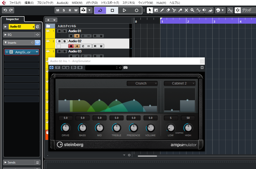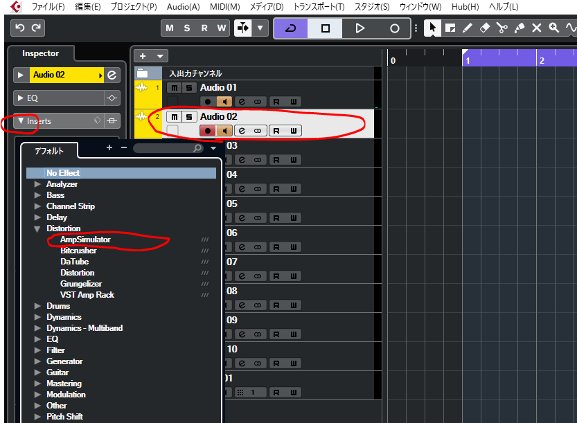 CUBASEで録音する場合に、INPUTの時点でエフェクタをかけて、
