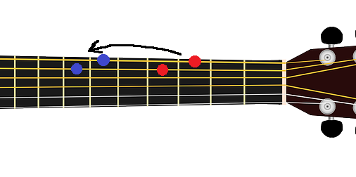 同じ押さえ方のまま、ずらせば同じ響きが得られる。