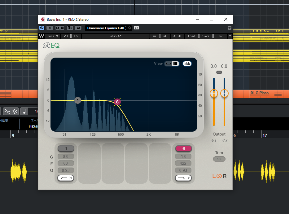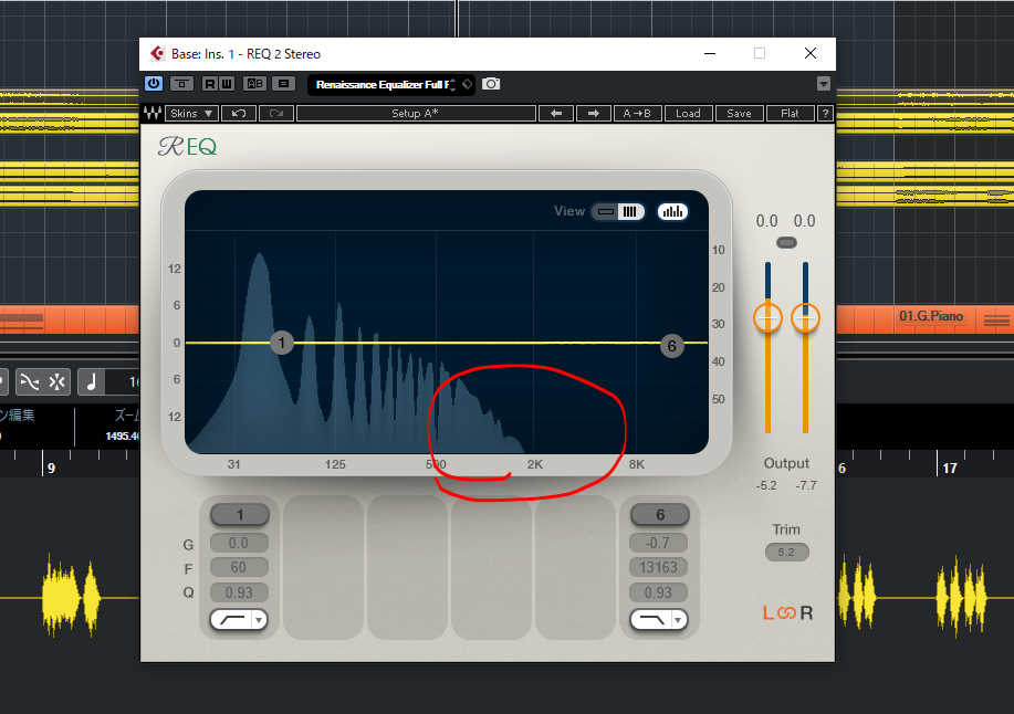 以下の写真は、WAVES GOLDに入っていた、「REQ 2 Stereo」というプラグインです。
