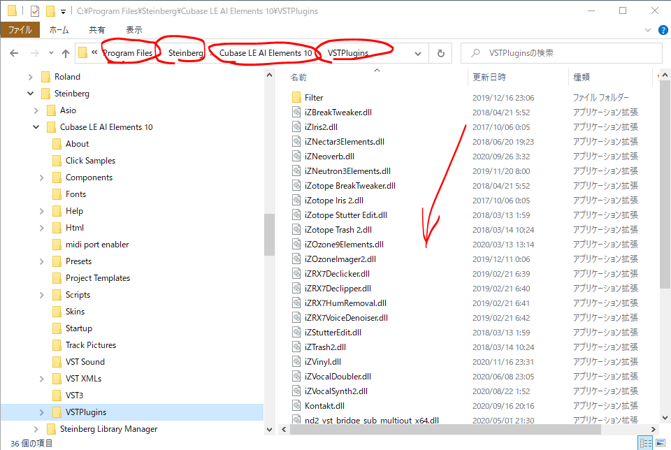 CUBASEのVSTを入れるべきフォルダを探します。