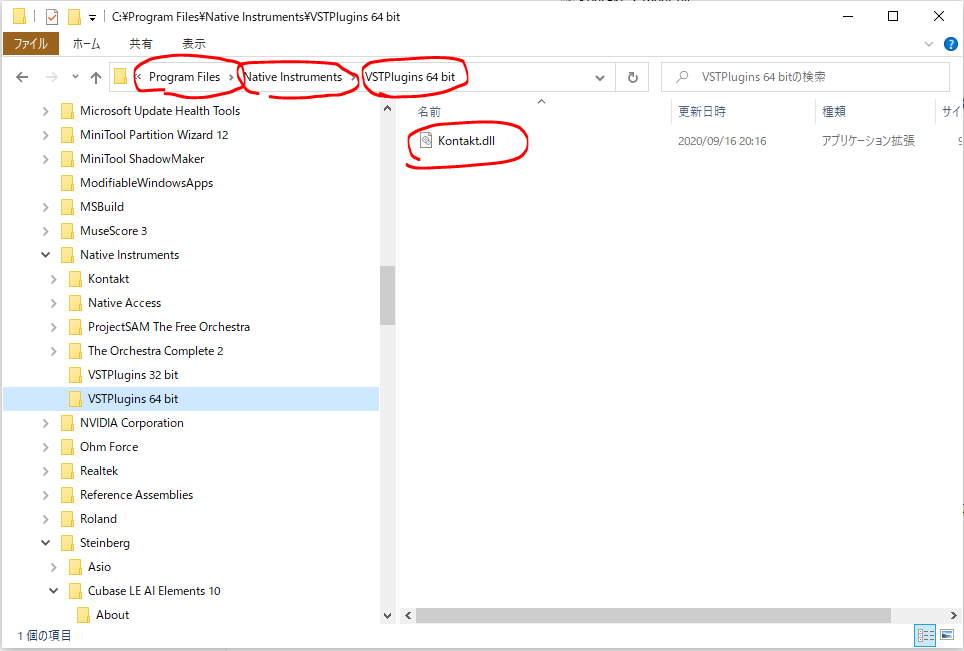 「Kontakt.dll」というファイルをコピーします。