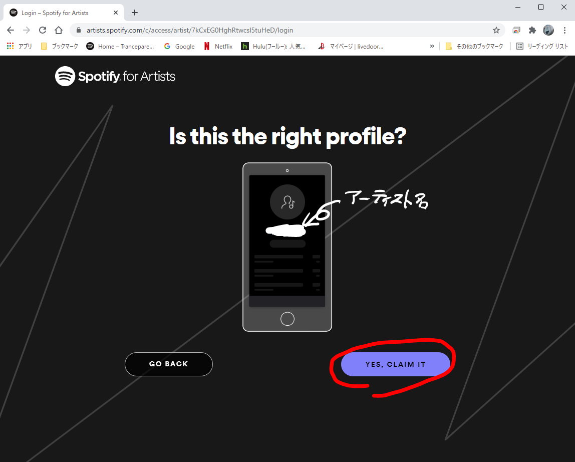 8.確か自分のアーティスト名であれば、YES,CLAIM IT!を押します。