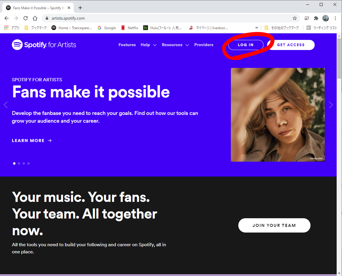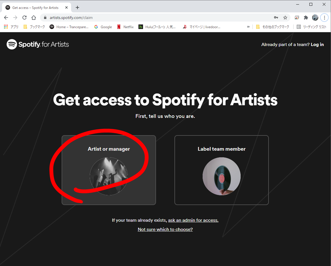 5.Artist or Managerを押す。(Labelなら右ですが今回の対象外)