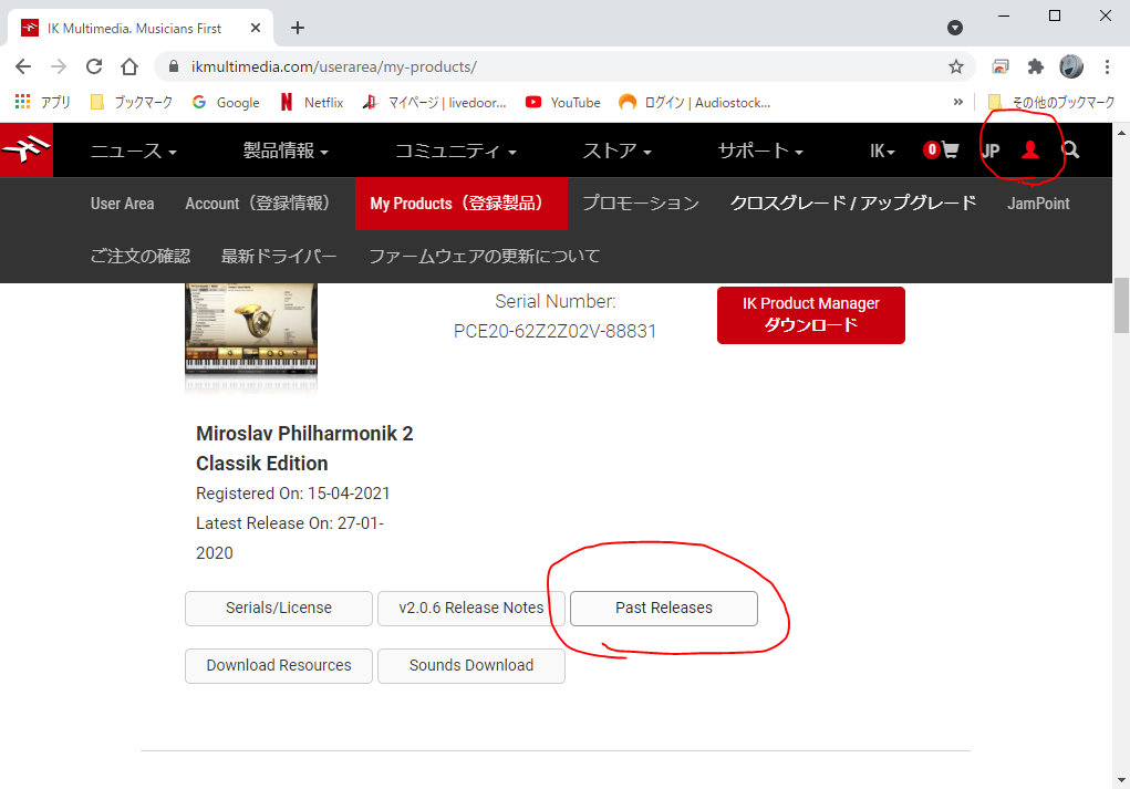 IK MultimediaのHPへ行ってログインします。MyProductsの中の、「Miroslav Philharmonik 2 CE」のところへ行って、Past Releaseをクリックして、一つ古いバージョンをダウンロードして、インストールするだけです。