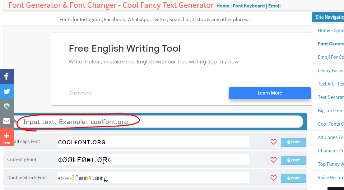 (1)サイトで文字を入力する