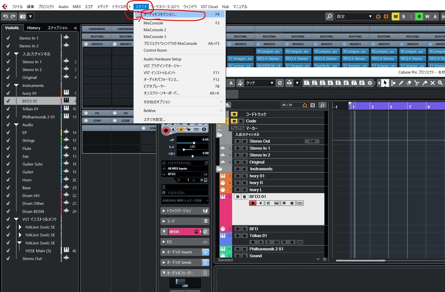 (1)スタジオ→オーディオコネクション