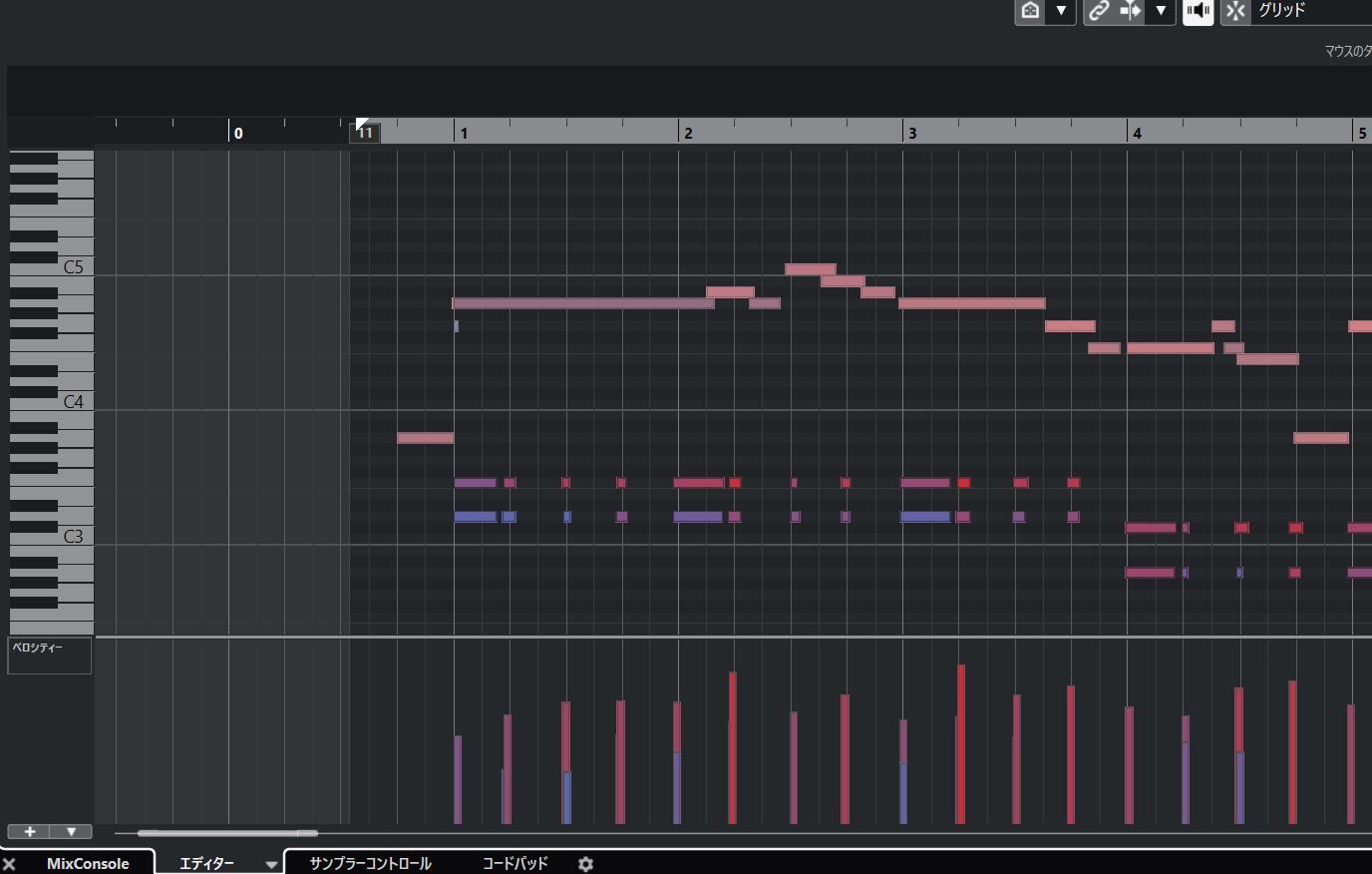 なお、アコーディオン打ち込みは、以下のような感じです。