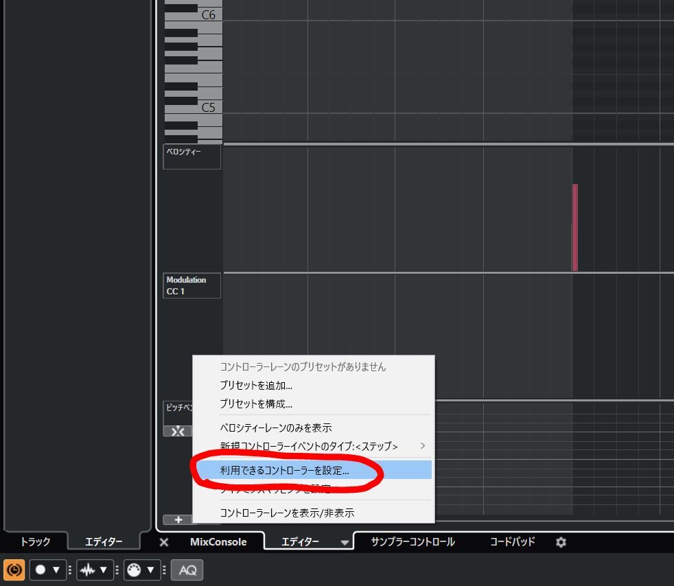 例えば、Modulation、Sustainなどのコントローラーを作成して、