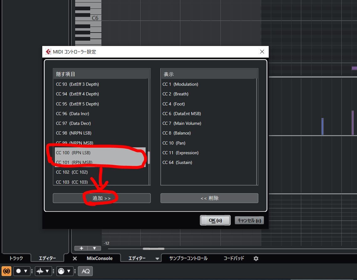 例えば、ピッチベンドの幅、pitch bend sensitivityを大きくしたい場合など、