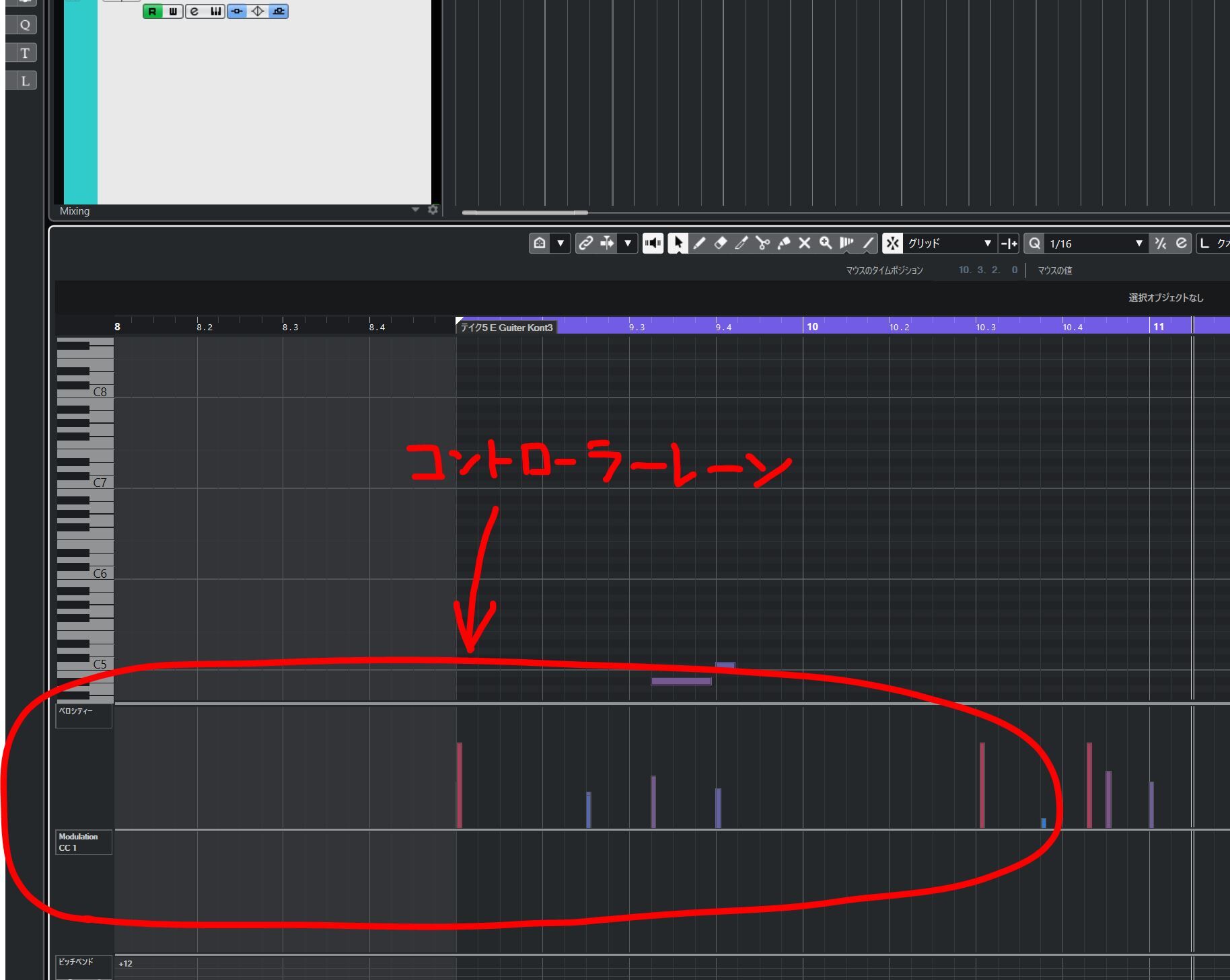 ご参考:キーエディタの下の部分こちらを「コントローラーレーン」と呼びます。