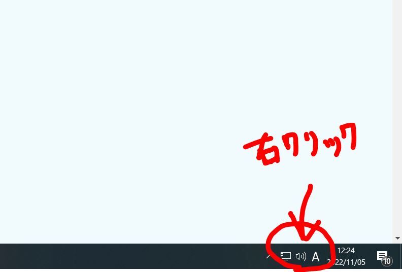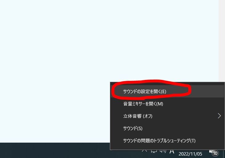 (1)タスクバーのスピーカーのアイコンを右クリック