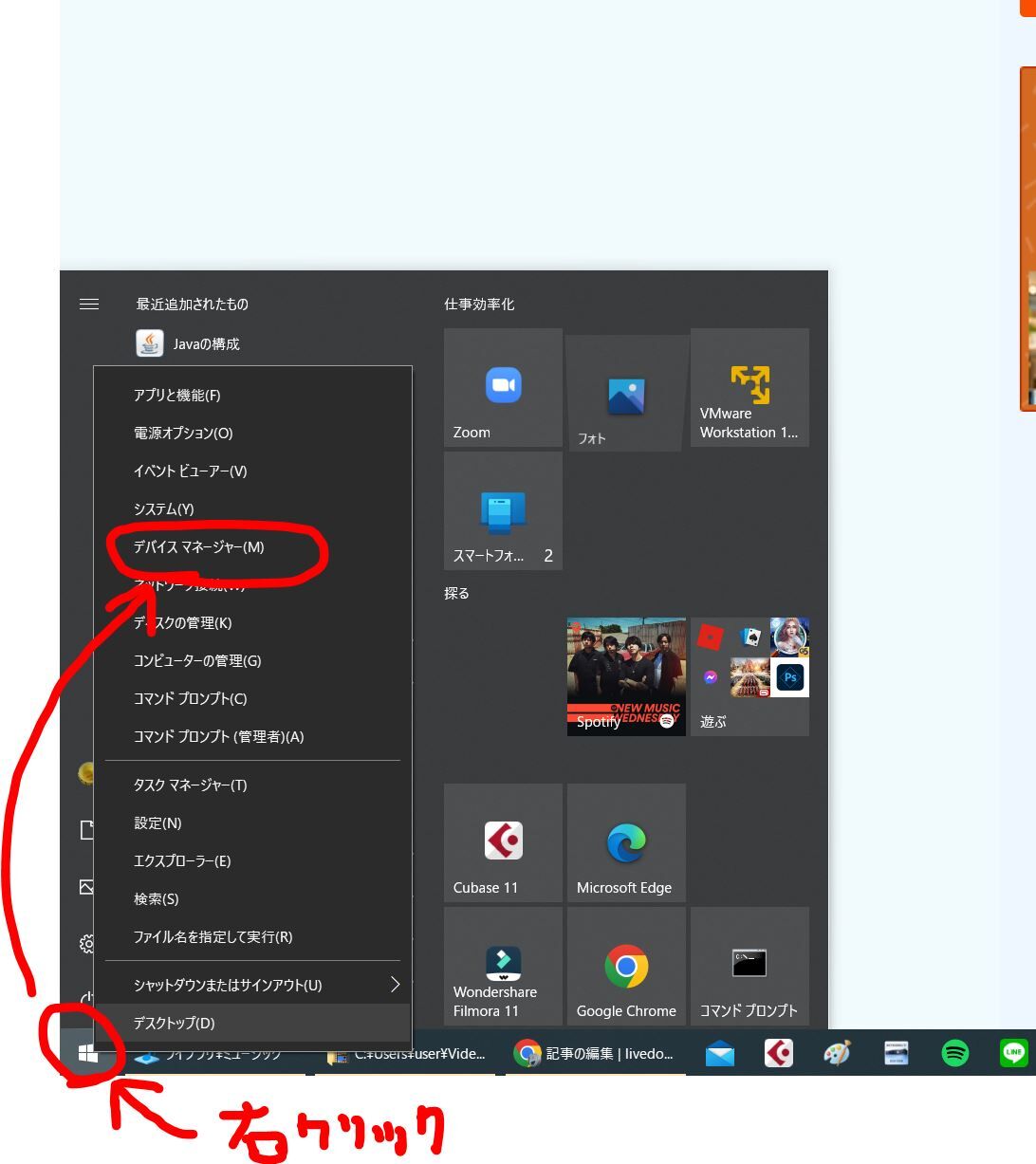 (4)ウインドウズボタンを右クリックして、デバイスマネージャを起動します。