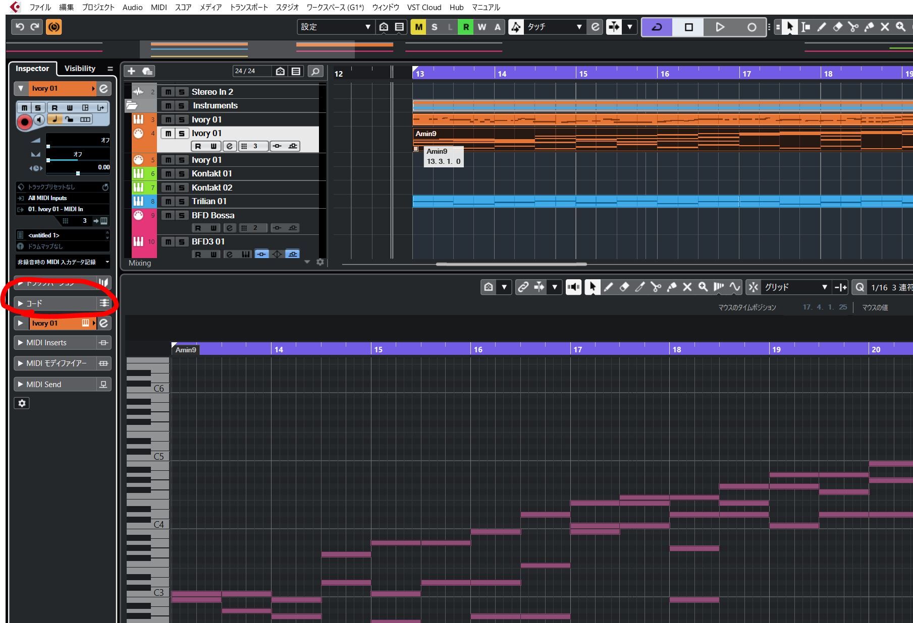 まず、こちら。MIDIイベントが入っているトラックの