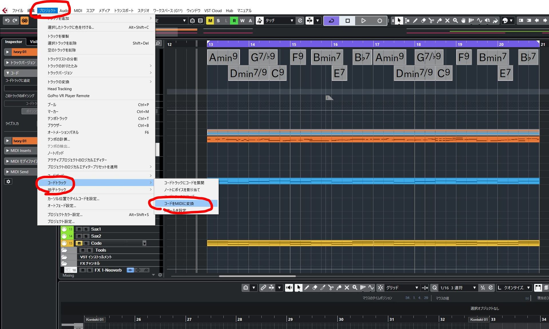 このようにして、コードトラックからMIDIイベントを書き出せます
